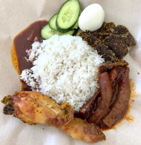 In KL, Nasi Lemak Tanglin has emerged as an iconic dish. You should consider waiting in line for their nasi lemak if you’re wanting one! You’re in for a feast that won’t break the bank with a wide selection of lauk (gravy) such chicken rendang, sambal sotong, and even paru! (beef lung). Their sambal sotong recipe is unique in that it contains ground peanuts, which give it a peculiar yet flavorful taste. Because it’s cooked in the “ceroi” manner, the rice absorbs more sambal for a flavorful mouthful.