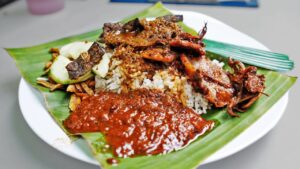Is there a single person who doesn’t enjoy Nasi Lemak? A hearty portion of Nasi Lemak, whether it’s delivered hot and steaming on a plate or cocooned in a banana leaf, is the perfect way to start the day. The national cuisine of Malaysia appears to be the ideal choice anytime to satisfy your tingling appetite, regardless of the meal of the day. You can never have too much of this delicious sambal served over rice laced with coconut and paired with a variety of sides like fried chicken, fried anchovies, eggs, cucumber slices, and more.